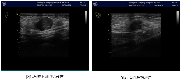 结论:右乳结节,BI-RADS 4B;右侧腋下淋巴结肿大