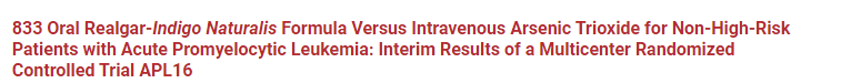 ASH 2022丨王怀宇教授:复方黄黛片(RIF) vs亚砷酸(ATO)治疗中低危APL:多中心RCT APL16研究中期结果