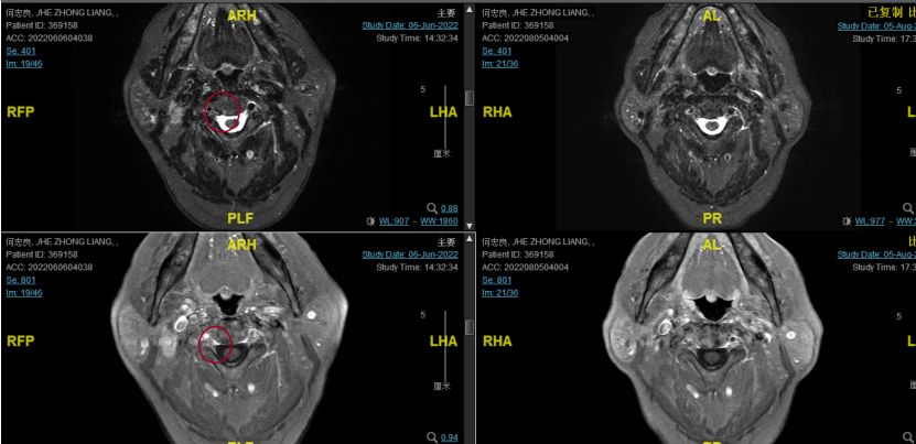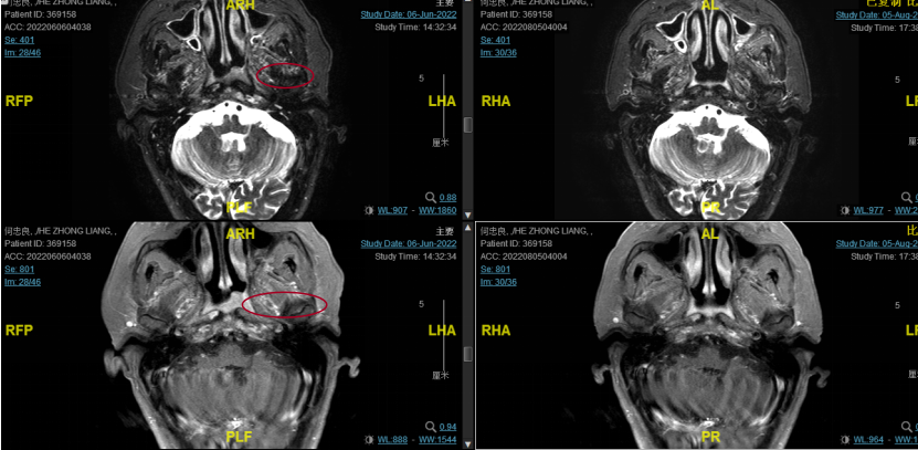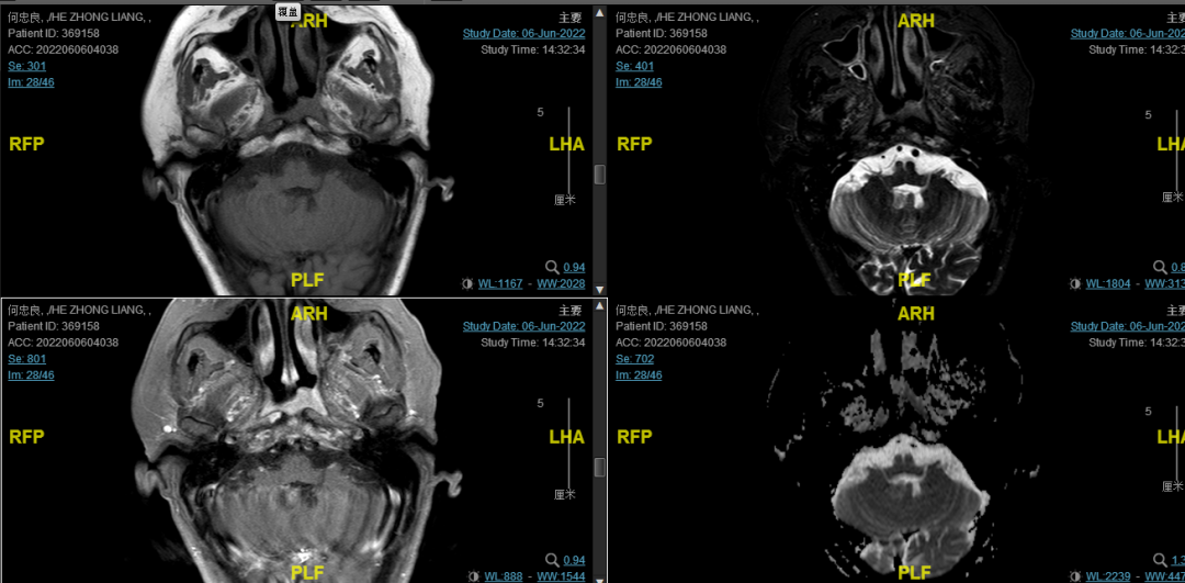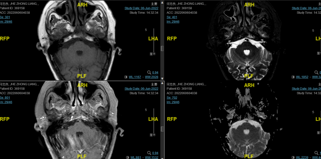 后患者至江苏省肿瘤医院放疗科就诊,2022-06-06完善头颅MR检查: