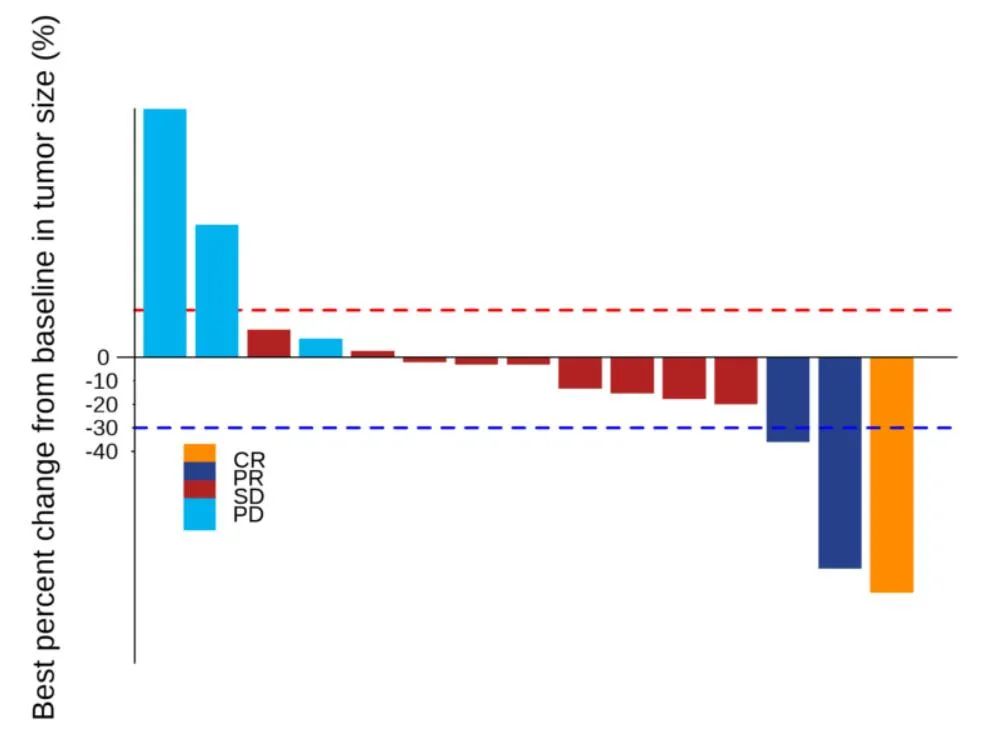 图2.患者的肿瘤大小自基线的最大变化