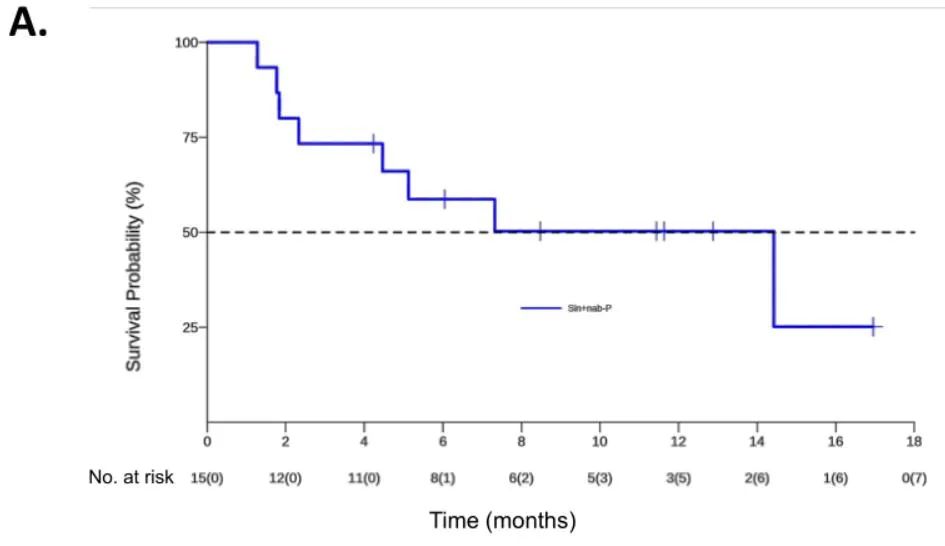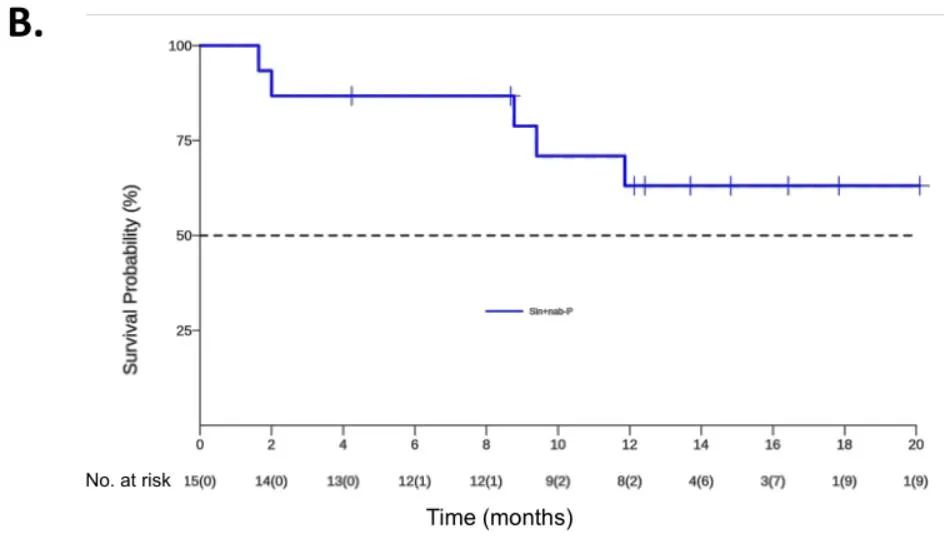 图3.信迪利单抗联合白蛋白结合型紫杉醇治疗晚期HNSCC的临床疗效(A:PFS;B:OS)