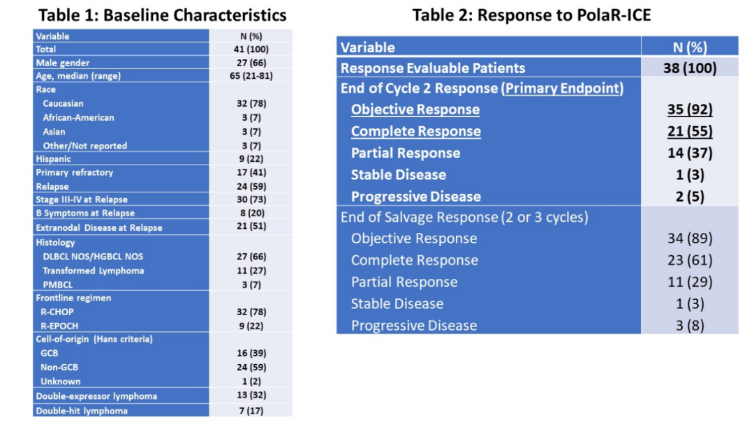 PolaR-ICE二线治疗RR DLBCL,ORR和CR率均高,安全性可耐受