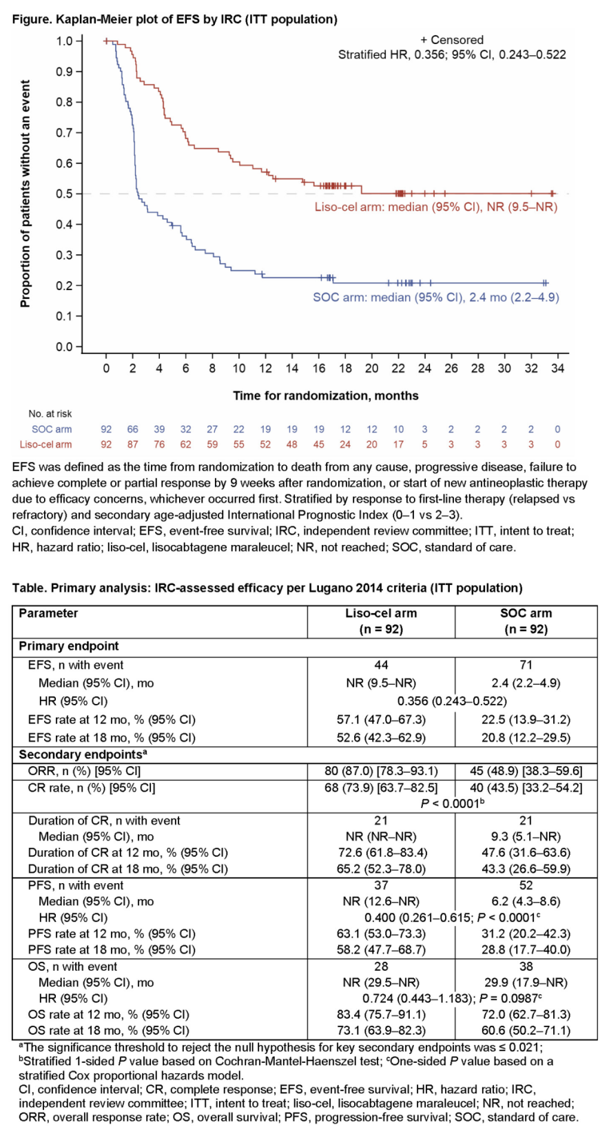 PolaR-ICE具有较高的ORR和CR率,安全性与RICE相似,没有因Pola而增加毒性。需要更长随访评估ASCT/Pola巩固治疗的缓解持久性和其他结果。