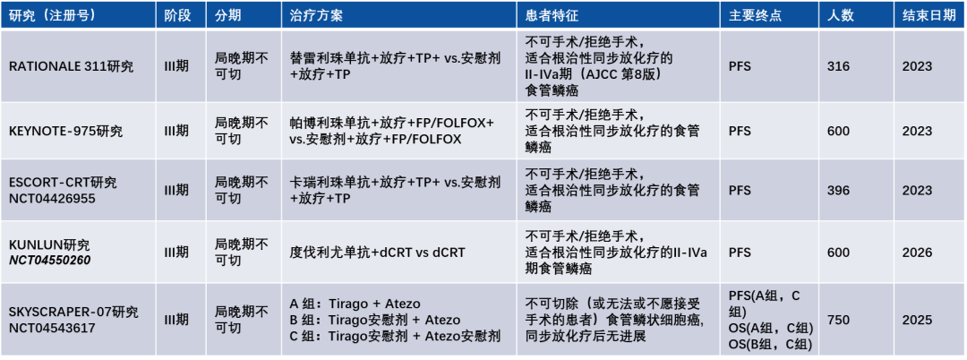 正在开展的局晚期不可切除食管癌免疫治疗的III期研究