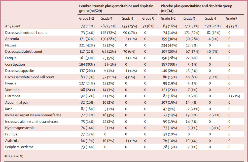 表2.最终分析中,帕博利珠单抗组和安慰剂组任何级别的不良事件
