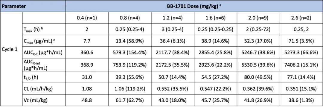 表3.BB-1701的药代动力学特征