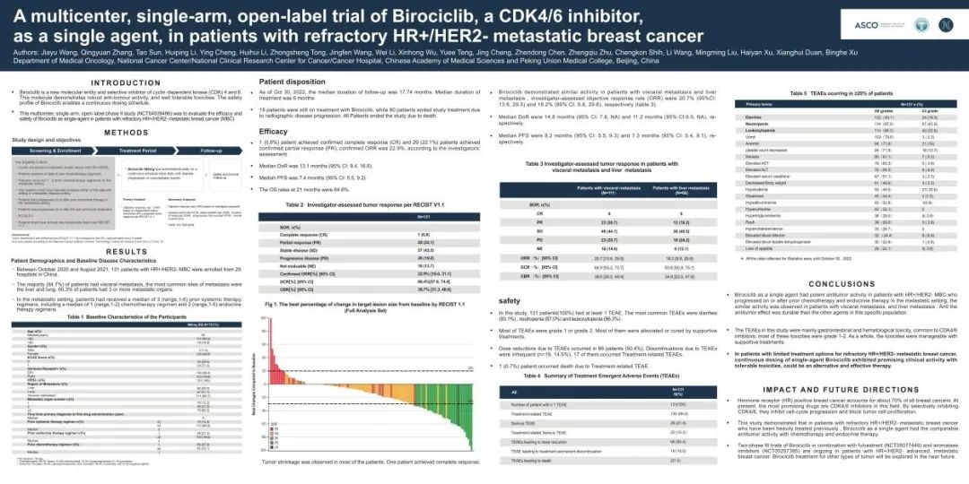 A multicenter,single-arm,open-label trial of birociclib,a CDK4/6 inhibitor,as a single agent,in patients with refractory HR+/HER2-metastatic breast cancer.2023 ASCO.Abstract#1072.