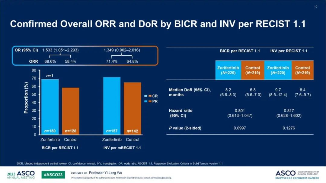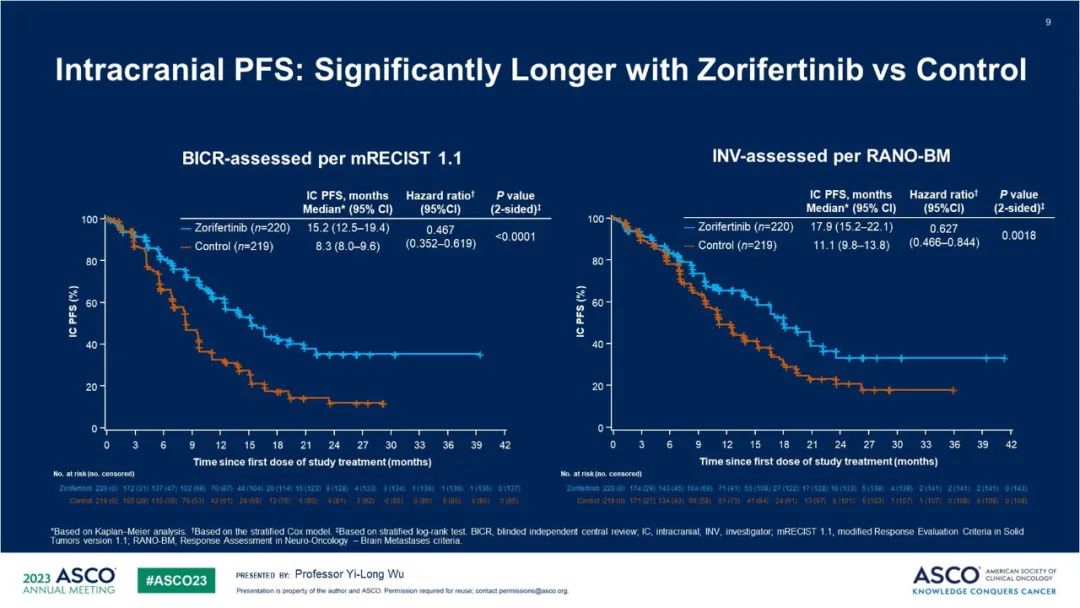 参考文献:Randomized phase 3 study of first-line AZD3759 (zorifertinib) versus gefitinib or erlotinib in EGFR-mutant (EGFRm+ ) non–small-cell lung cancer (NSCLC) with central nervous system (CNS) metastasis.2023 ASCO Oral Abstract Session.9001.