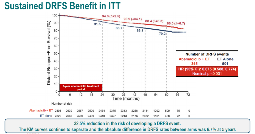 尽管目前monarchE研究还未观察到OS的获益,但此次5年数据已经进一步证实阿贝西利2年辅助治疗可显著降低转移性复发的风险。相信在更长时间的随访后,IDFS和DRFS获益有望转化为OS获益。