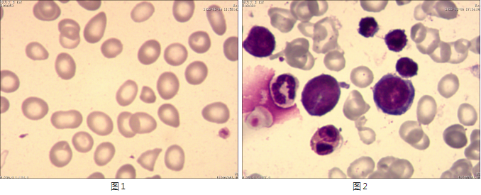 外周血细胞形态及性质:成熟红细胞大小不等,以小细胞为主,色素充盈欠佳,部分细胞中心过浅染(图1);