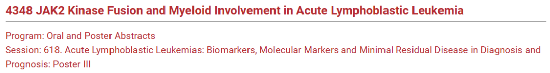 ASH 2023丨王彤教授:急性淋巴细胞性白血病中JAK2激酶融合及髓系累及