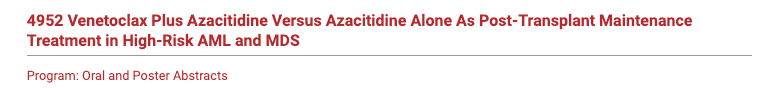 结论:该研究结果表明,VEN/AZA和AZA维持治疗都是可耐受的,VEN和AZA联合作为维持治疗在移植后预防高危MDS、AML患者复发可能是可行和安全的。