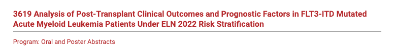 2022 ELN风险分层下FLT3-ITD突变AML患者移植后临床结局及预后因素分析