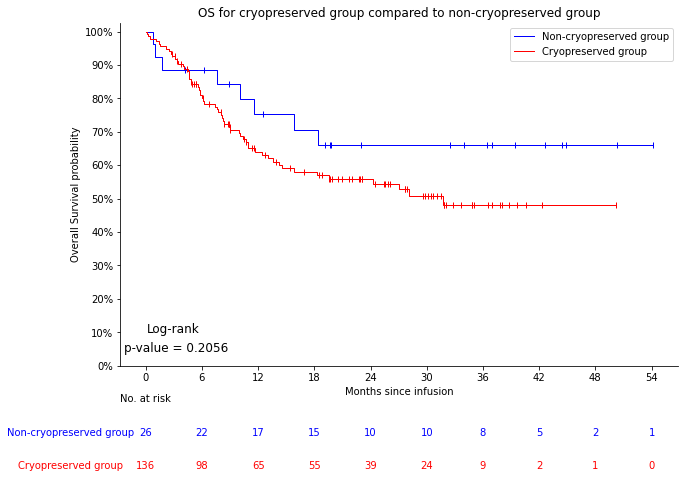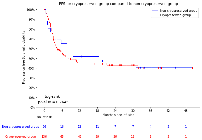 图2.冷冻保存组与新鲜采集组的PFS结果