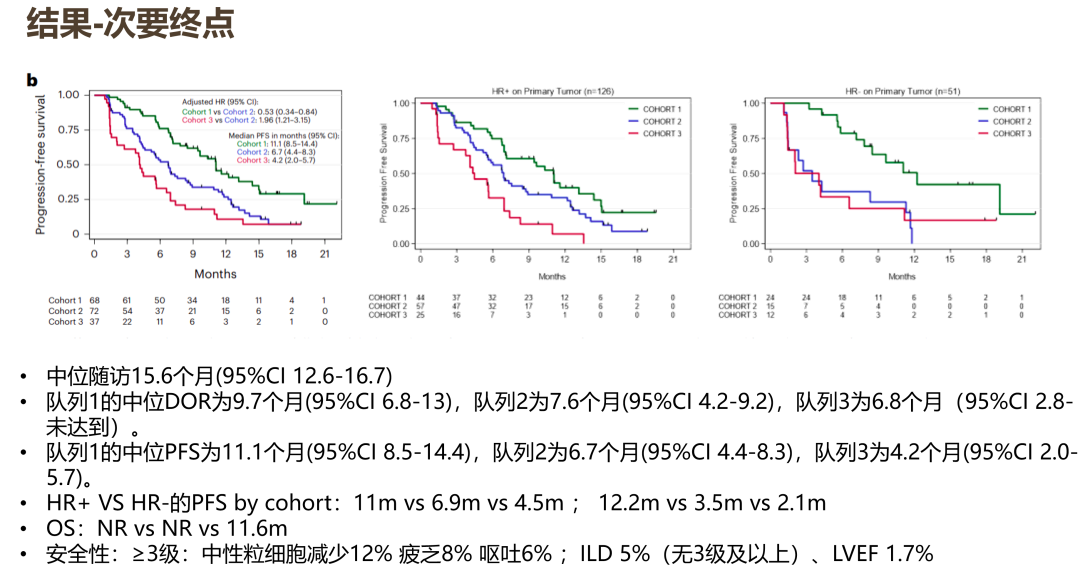 PFS方面,HER2高表达组为11.1个月,低表达组为6.7个月,IHC 0表达组为4.2个月。与DESTINY-Breast系列研究相比,因DAISY研究治疗线序更为靠后,故mPFS在数值表现方面略低。