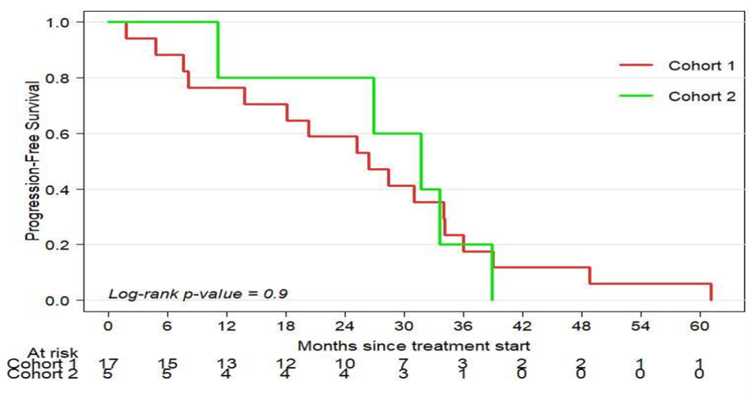 队列1中21.9%的患者和队列2中20.8%的患者发生了疾病进展。在队列2发生疾病进展的患者中,2例接受了免疫检查点抑制剂再激发治疗,并正在接受治疗。在队列1中,2例患者死于疾病进展;队列2中无一例患者因疾病进展死亡。