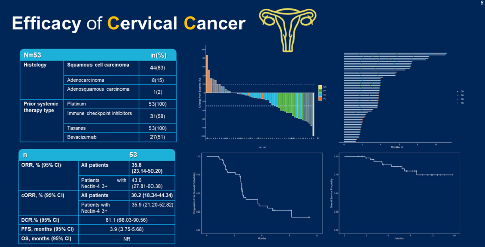 综述之,上述数据表明9MW2821在晚期尿路上皮癌、宫颈癌、食管癌和三阴性乳腺癌中显示出令人鼓舞的疗效。9MW2821是首个针对Nectin-4的ADC药物,在宫颈癌、食管癌和三阴性乳腺癌患者中显示出抗肿瘤活性,安全性特征显示足够的耐受性。