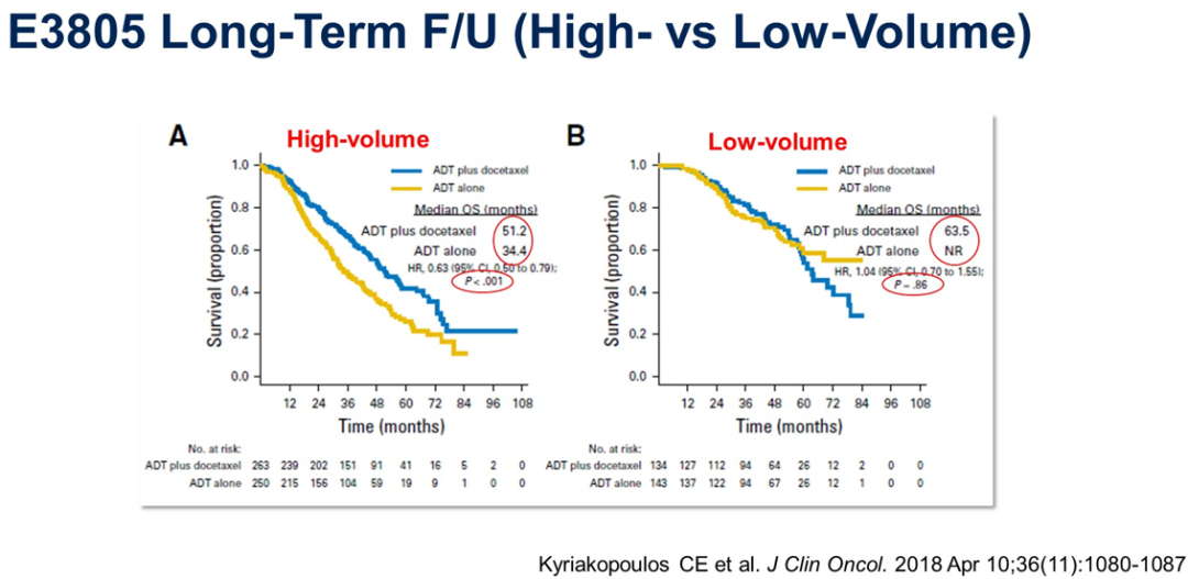 值得注意的是,随着ADT联合二代抗雄,ADT联合二代抗雄+多西他赛三联方案在mHSPC中的广泛应用,化疗二联方案在mHSPC的应用场景逐渐减少,因此该研究结果的应用可能也会随着临床实践的改变或药物可及性的问题受到限制。